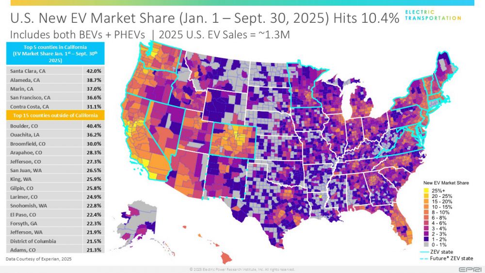 The ET team tracks market share of new EVs nationwide, by state, and by county. This does not include used vehicle sales. Our heat maps support a strengthened understanding of the growth of EV sales as well as charging infrastructure.