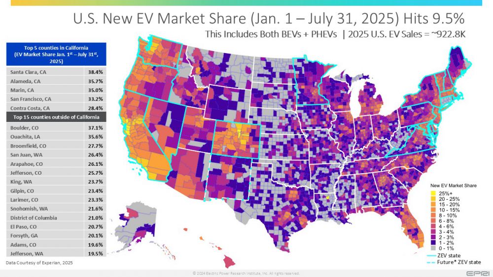 The ET team tracks market share of new EVs nationwide, by state, and by county. This does not include used vehicle sales. Our heat maps support a strengthened understanding of the growth of EV sales as well as charging infrastructure.